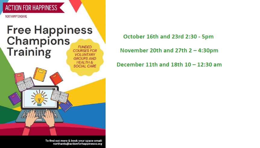 Please register your interest via the below Eventbrite link: https://www.eventbrite.co.uk/o/action-for-happiness-northamptonshire-77585139733